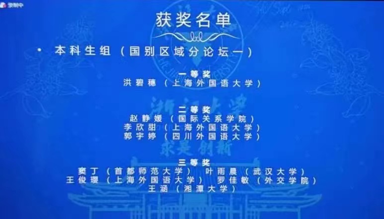 我系2021级法语本科生史怡然同学获得区域国别二组一等奖。