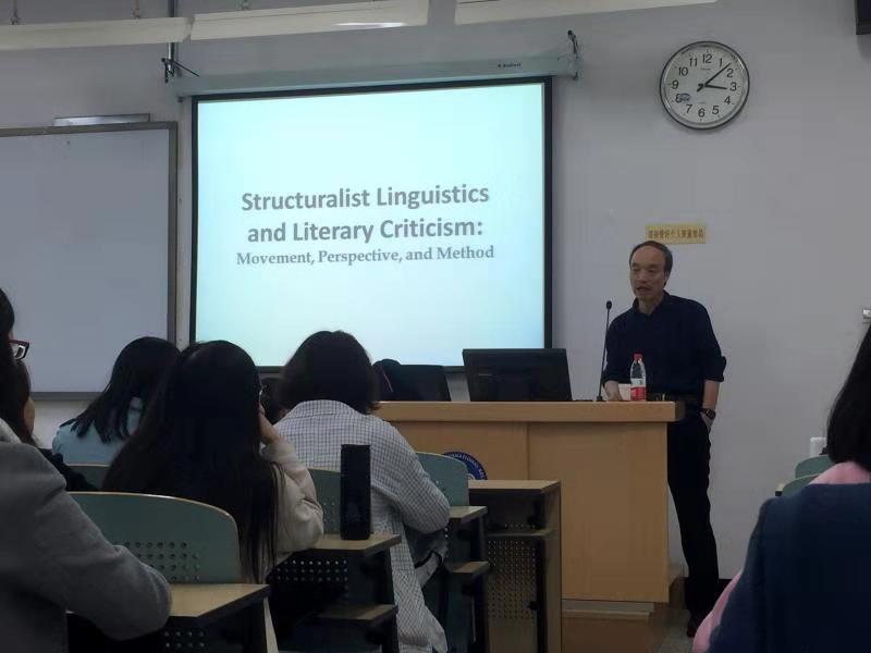 2018年秋季学期,我校太阳集团城娱8722成功举办“现当代西方文论”系列讲座,于2018年11月14日圆满落下帷幕。此次系列讲座特邀请到北京大学外国语学院英语系教授、博士生导师刘建华老师,清华大学外文系教授、博士生导师封宗信老师,以及北京师范大学外文学院院长、教授、博士生导师苗兴伟老师,为国关学子开展了“当代美国文学研究的基本思路”、“结构主义语言学与文学批评:思潮、视角、方法”及“生态文学中生态身份的话语建构”三场有深度、有温度的重磅讲座。太阳集团城娱8722梁晓晖教授主持了三场讲座。